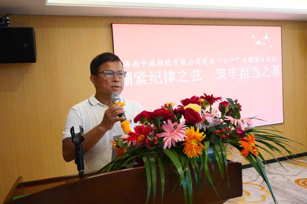 爲(wei)慶祝中(zhong)國(guo)共産(chan)黨成(cheng)立104周年(nian),持續深化黨員(yuan)幹部(bu)作(zuò)風建(jian)設(shè),6月30日(ri)上午,海南(nan)中(zhong)旅控股有(yǒu)限(xian)公(gōng)司黨委(wei)組織公(gōng)司領(ling)導(dao)班子(zi)、中(zhong)層幹部(bu)及(ji)全體(ti)黨員(yuan)共36人(ren),開展(zhan)“赓續紅(hong)色血脈 築牢作(zuò)風防線(xiàn)”七一(yi)主(zhu)題黨日(ri)活動(dòng)。