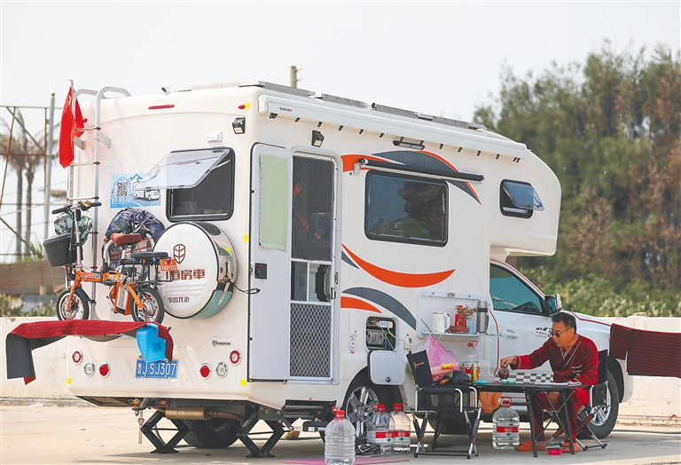海邊的(de)一(yi)處房車(che)營(ying)地分(fēn)散停着3輛房車(che)。其中(zhong)一(yi)輛自行式(shi)C型房車(che)旁,車(che)主(zhu)萬勝(sheng)意收起遮陽(yáng)篷,支起折疊椅,泡上一(yi)壺茶,打開藍牙音箱,哼起小(xiǎo)曲兒,盡享面朝大(da)海、椰風拂面的(de)惬意。